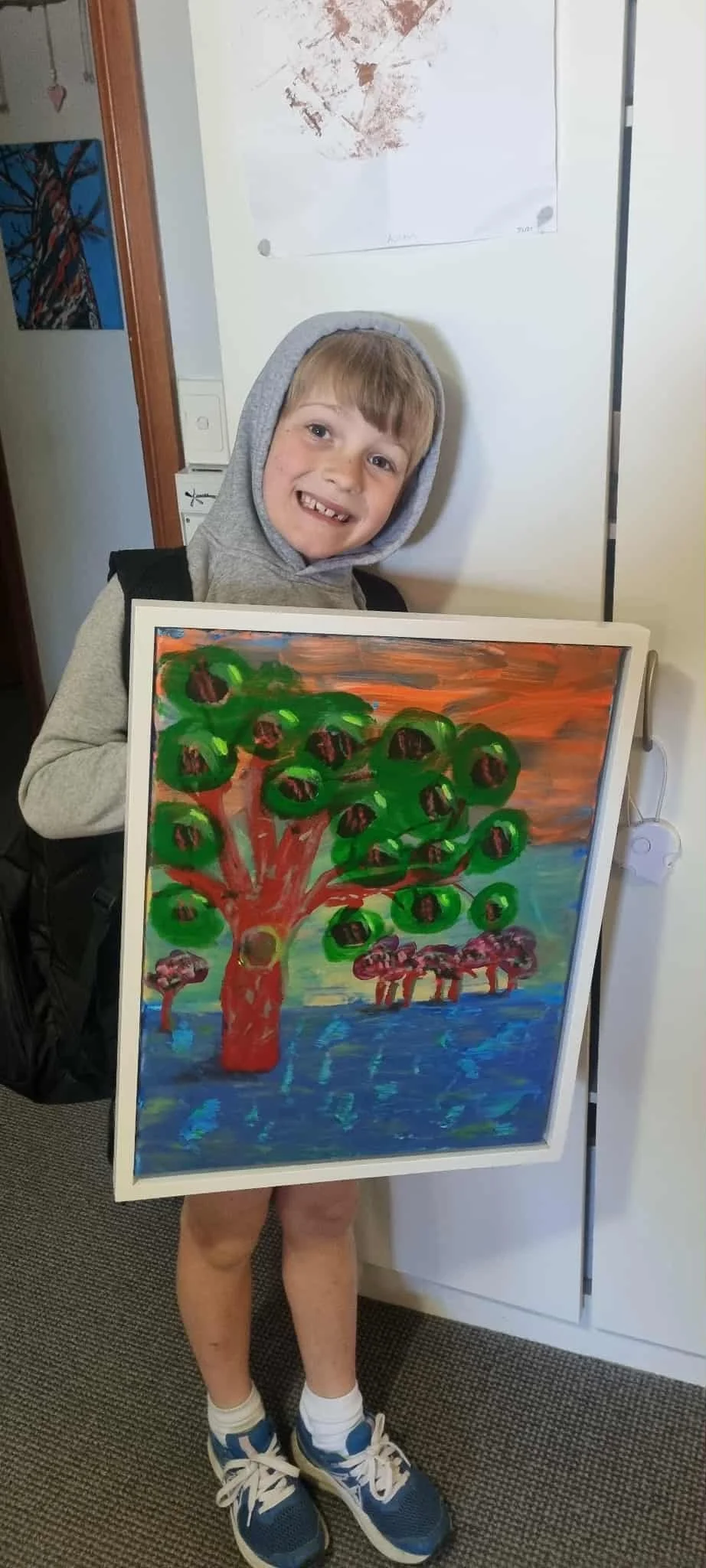 My “Woo-Hoo” moment was seeing my Son Austin’s work hanging alongside professional and highly skilled artists from the region and beyond. I can’t explain in words how proud of him I am. His enthusiasm for art, his passion to get his work into the exhibition (alongside adults), and his determination to have the piece “just right” made my heart melt. Austin was 7 years old at the time of the 2025 Boorowa Art Show, and one of Woolfest’s organisers mistook his work for that of a local artist that has been practicing professionally for over 20 years. Well that definitely blew my socks clean off!